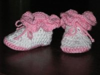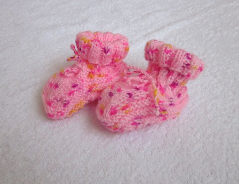 Postup: Nahodíme 42 ok, pleteme pružný lem 2 hladce 2 obrace asi 6cm.U hotové bačkůrky to je horní lem, který se ohrne. Asi po 6cm pleteme 1 řadu hladce ,1 řadu dírek na provlečení šňůrek / 2 oka hladce splést,1 nahodit a stále opakovat až do konce řady /. Dále pleteme 1 řadu hladce. Poté odložíme na spínací špendík/aby se nám nevypáraly/ po krajích 15 ok, na prostředních 12 okách pleteme hladce asi 6cm. Poté na jednu jehlici nabereme odložených 15 ok z jedné strany, 10 ok, která nabereme po kraji teď upleteného hladce, 12 ok z jehlice, 10 ok nabraných postraně,15 ok odložených z druhé strany. Na všech okách pleteme 8řad-střídavě 2 řady hladce 2 řady obratce. Dál plateme chodidlo - všechna oka necháme na jehlici, ale plést budeme jen na prostředních 10 ok s tím , že v každé řadě na začátku a konci spleteme s prvním okem postranních ok. Pleteme tak dlouho až máme celé chodidlo.Celou šlapku pleteme 1 řadu hladce ,1 řadu obrace a stále střídame. Zůstanou nám 2 oka a 10 prostředních, ty všechny nakonec uzavřeme. Sešijeme zadní šev, provlékneme šnůrku a je hotovo .